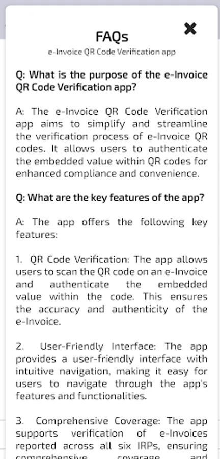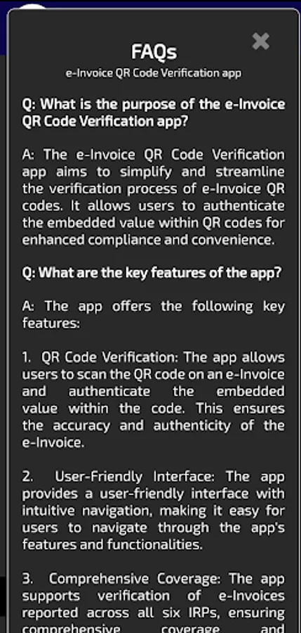 • Swift QR Code Verification: Scan and authenticate e-invoice QR codes instantly.