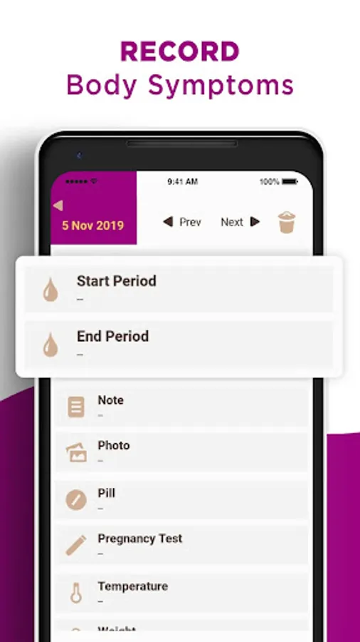 ✔ Track more than 20 Symptoms and remember your Breast Self examination