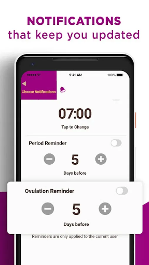 ✔ Disable Daily Options, for example for kids or when you don't like to come pregnant