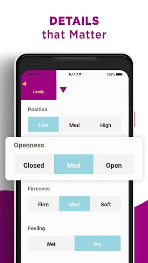 ✔ Track your Cervix position, openness, firmness & feeling