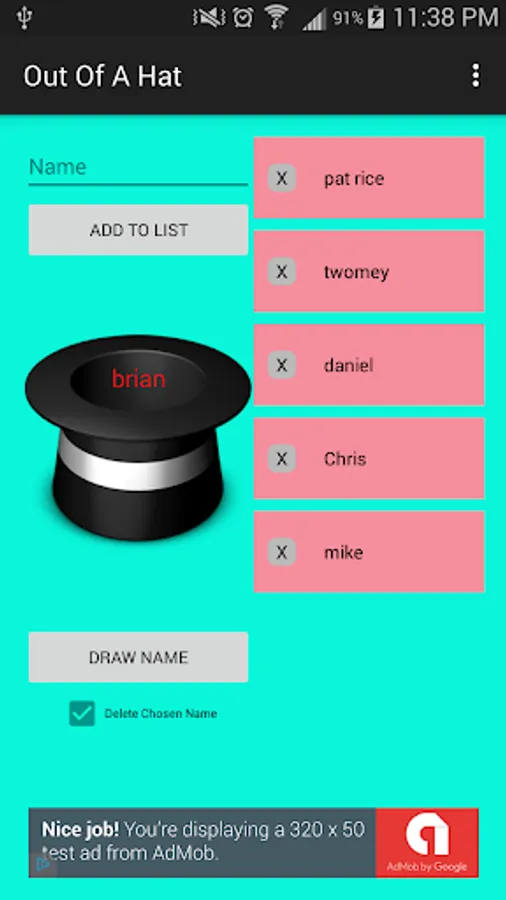 Create a list of items, then choose one at random. List is saved when app is turned off.