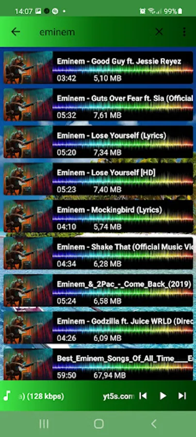 Album-matched music player wallpaper and menu colors.
