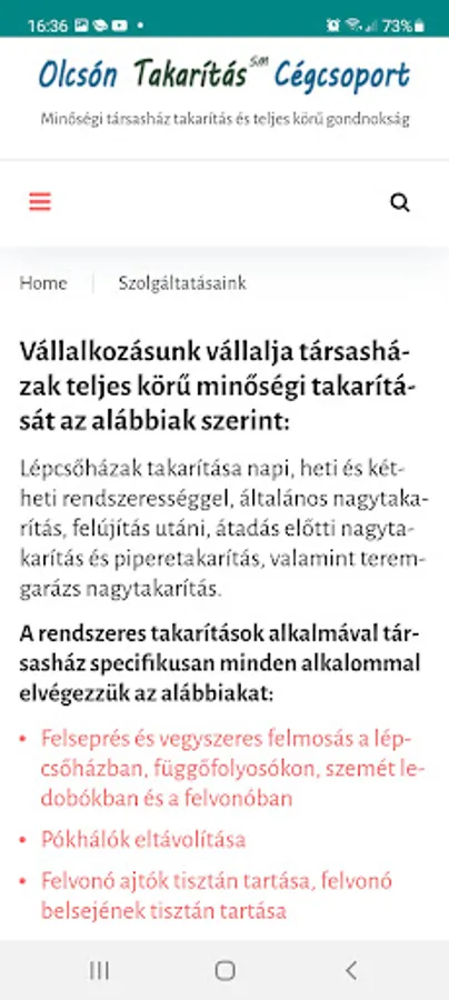 - Vállalkozásunk vállalja társasházak teljes körű minőségi takarítását az alábbiak szerint: