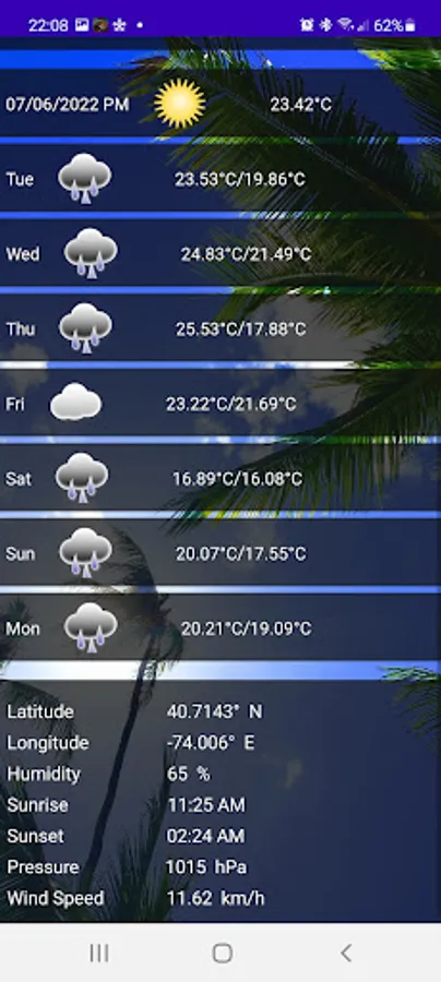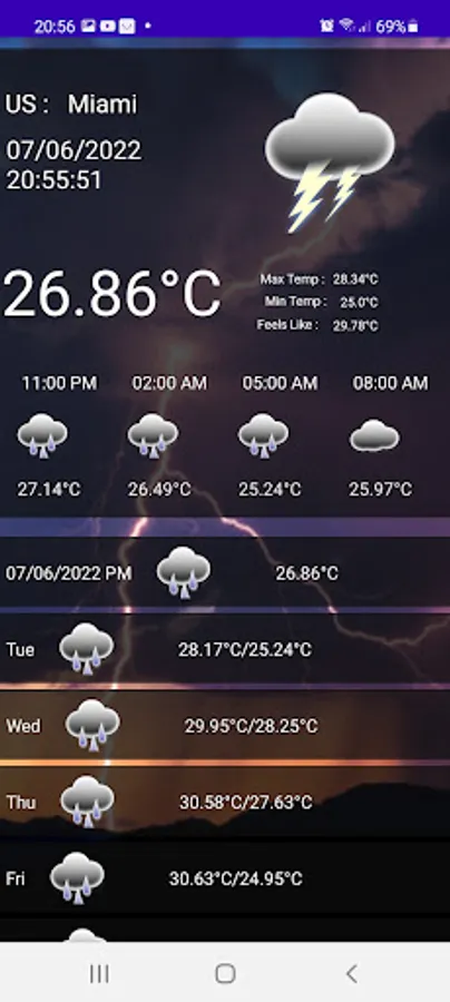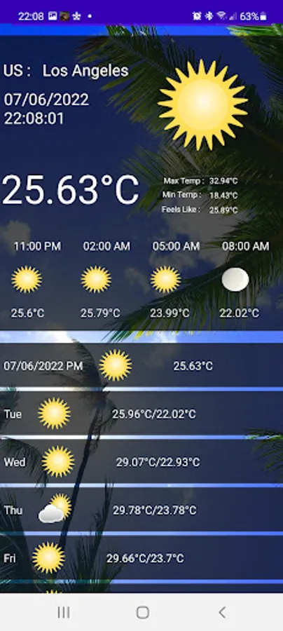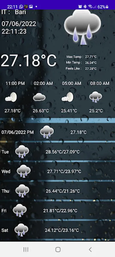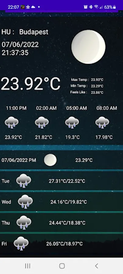 Current, hourly forecast 3 hour step and 6 days weather forecast