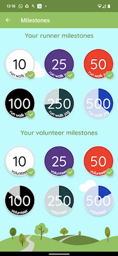 * Track your progress towards those all important run/walk/jog/volunteer milestones - the 10, 25, 50, 100, 250 & 500