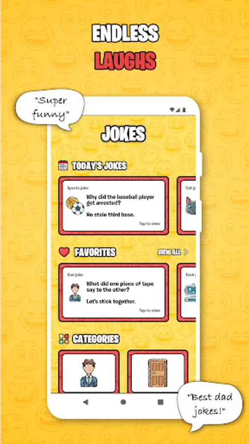 Need a good laugh? Jokes has you covered with 2000+ hilarious jokes with 18 categories!