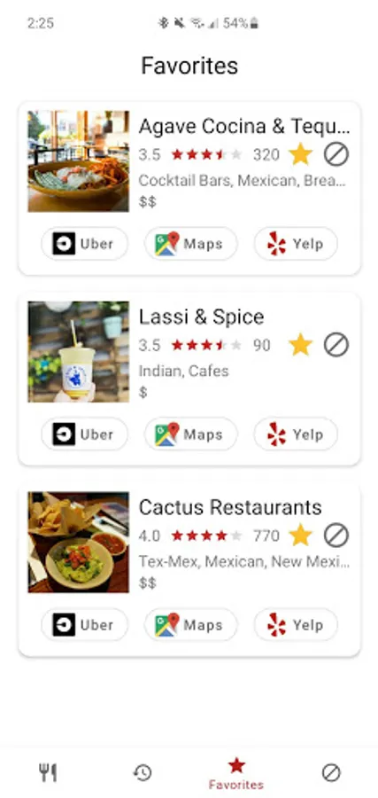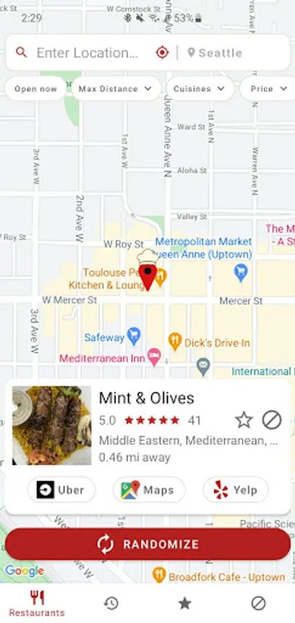 -Ability to access the randomly selected restaurants in Yelp, Google Maps or Uber straight from the app