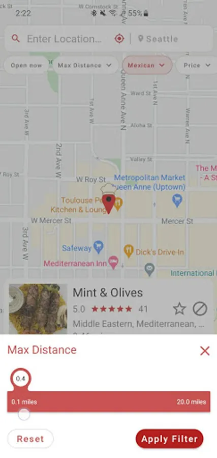 -Filter by only those that are currently open so you don't have to worry about going to a restaurant that is already closed