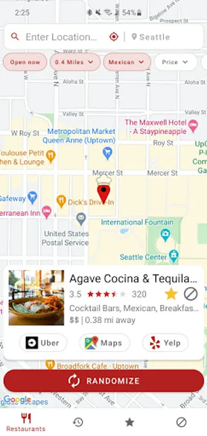 If you do not like the restaurant picked by the randomizer just click the 'Pick Restaurant" button again. Once you find a restaurant that you like, easily open it in Google Maps, Yelp, or Uber.
