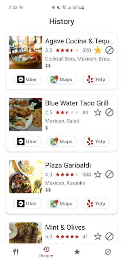 -Ability to see history of restaurants randomly picked in case you want to go back to a restaurant that you viewed recently