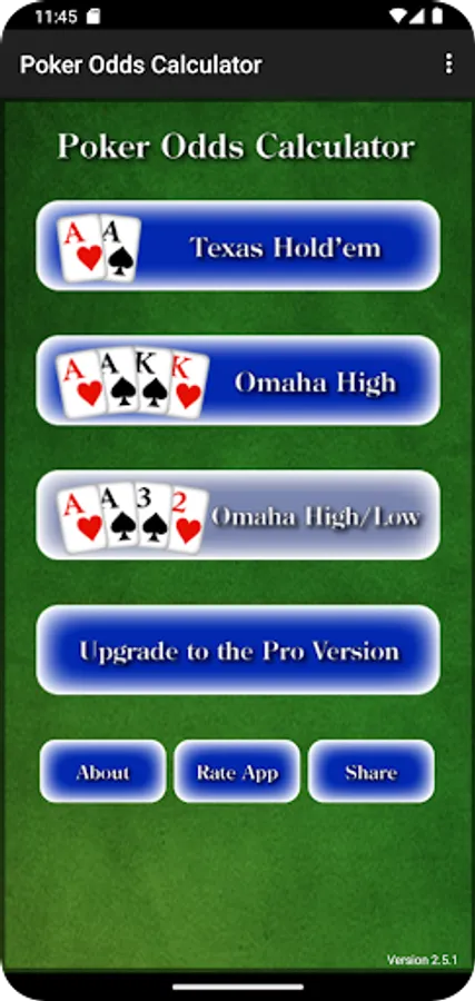 * Calculates odds for Texas Hold'em Poker and Omaha High Poker with more game types coming soon