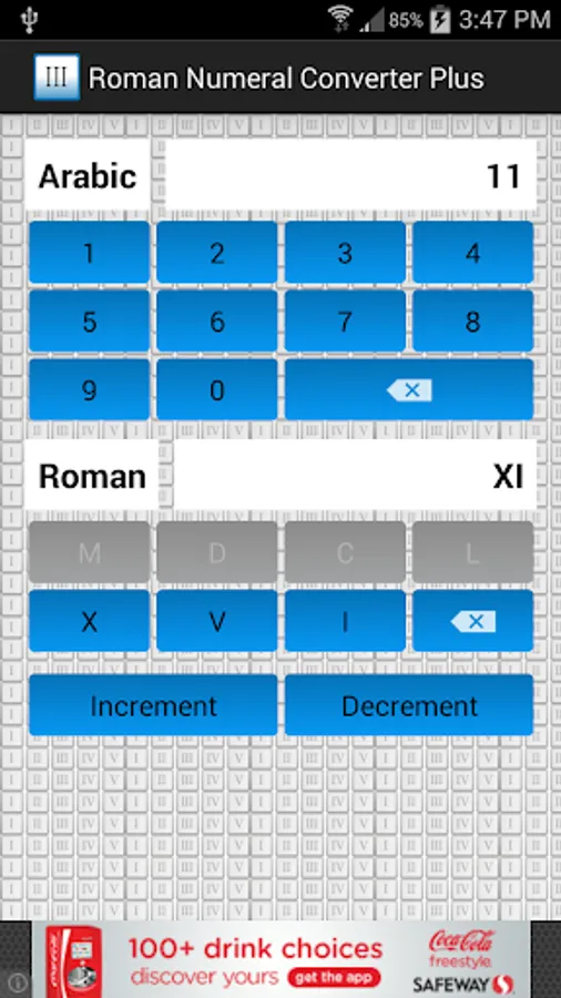 Roman Numeral Converter Plus is a Roman-to-Arabic and Arabic-to-Roman numeral converter.