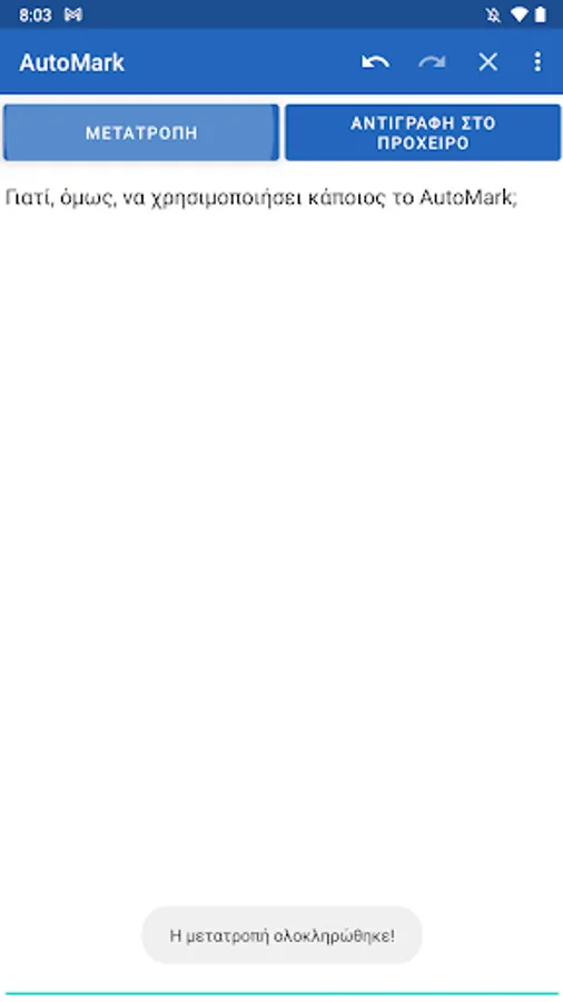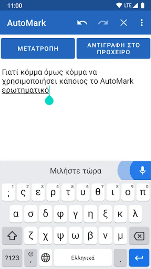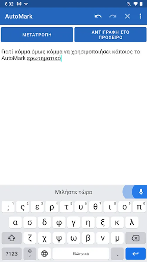 In order to use AutoMark, you must use Gboard or a similar keyboard with Voice Dictation. While speaking, use one of the following keywords, and they will be replaced with the appropriate punctuation marks after tapping the "Convert" button: