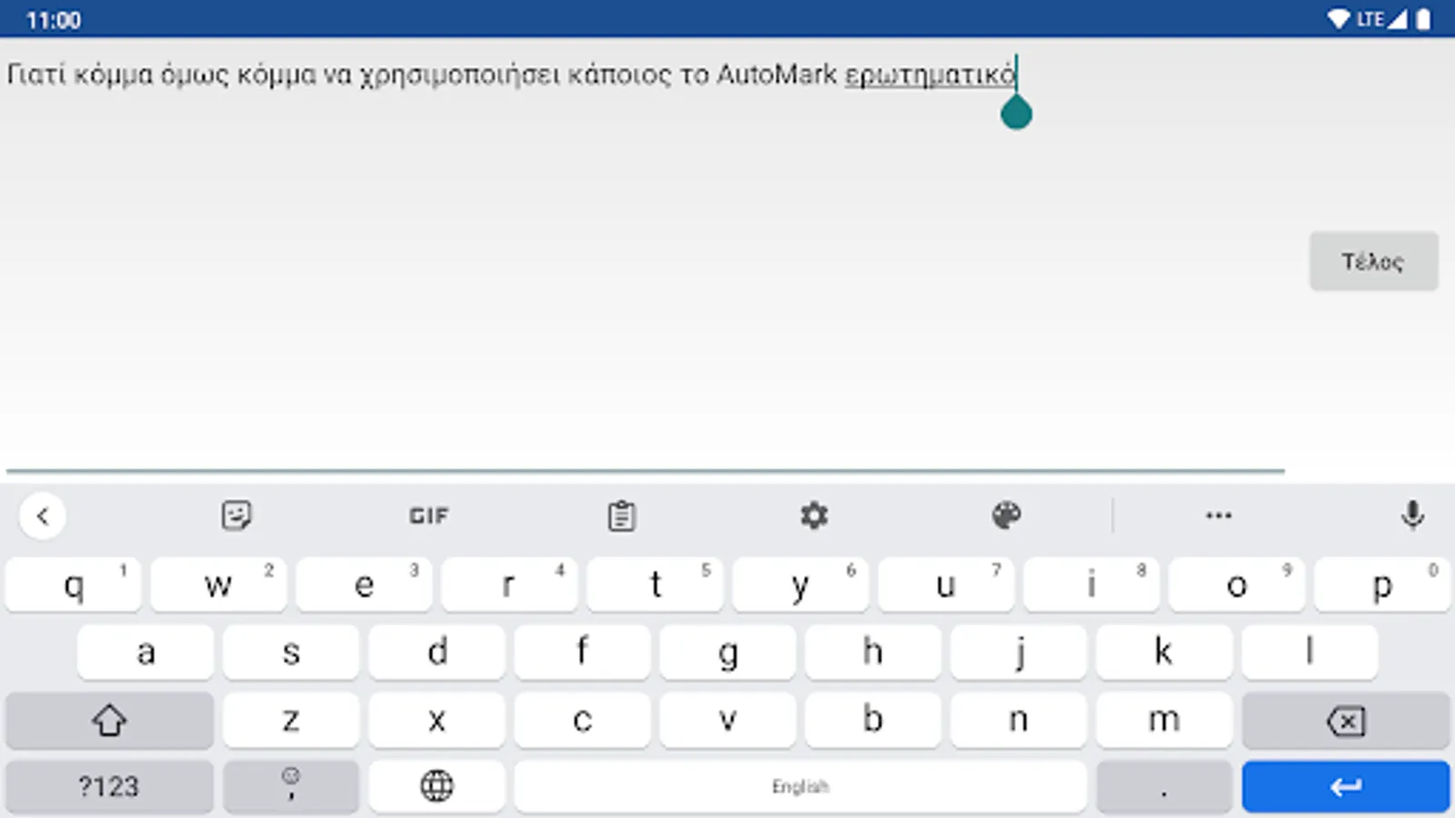 AutoMark is not required for languages that already have support for punctuation marks in Gboard, such as English.