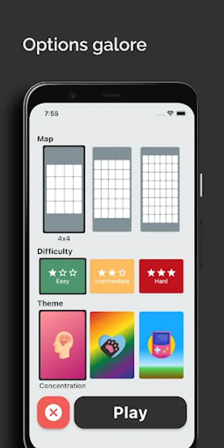 Concentration, also known as Matching Pairs, Match Match, Match Up, Memory, Pleonasm, Shank, Pexeso or simply Pairs, is a card game in which all of the cards are laid face down on a surface and two cards are flipped face up over each turn. The object of the game is to turn over pairs of matching cards.