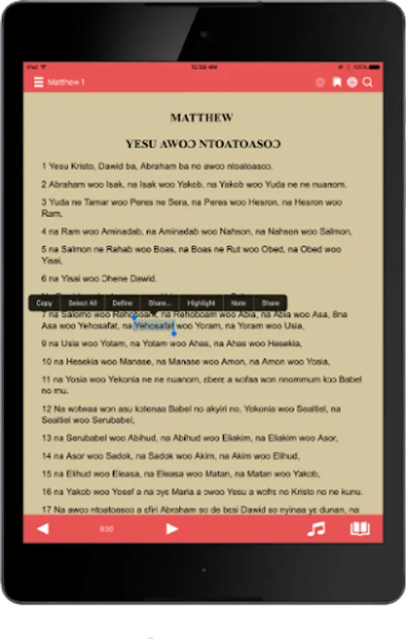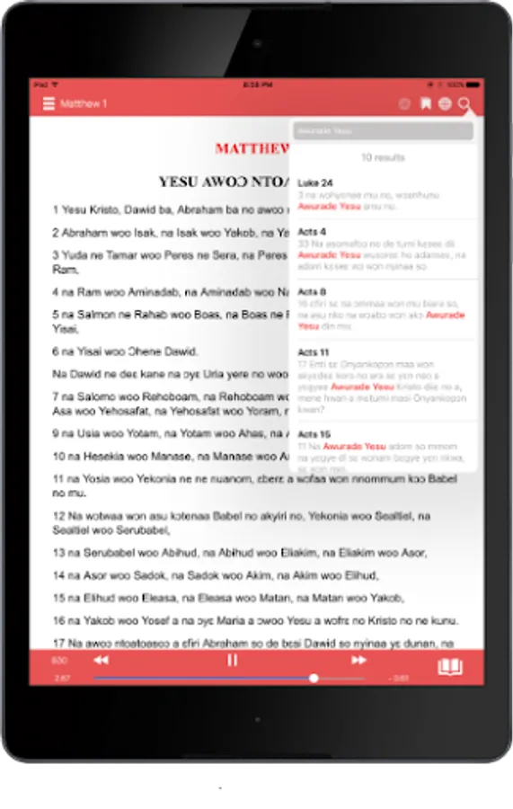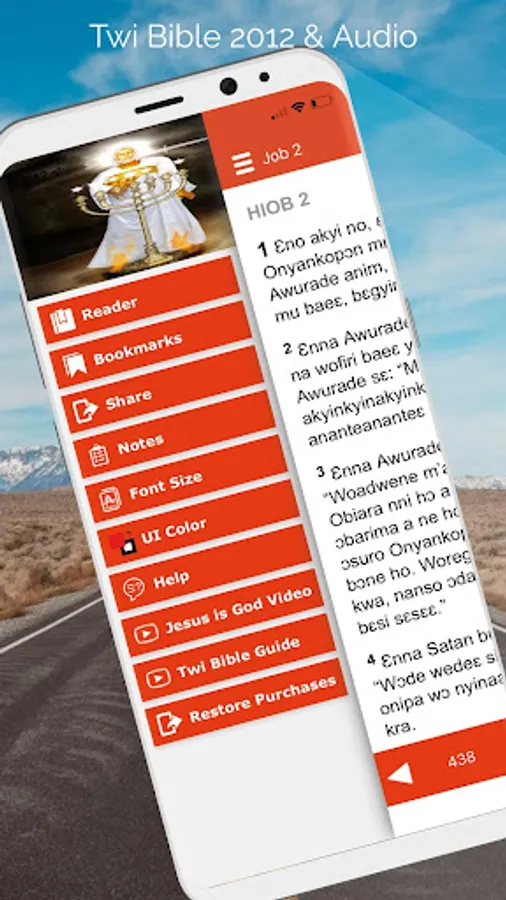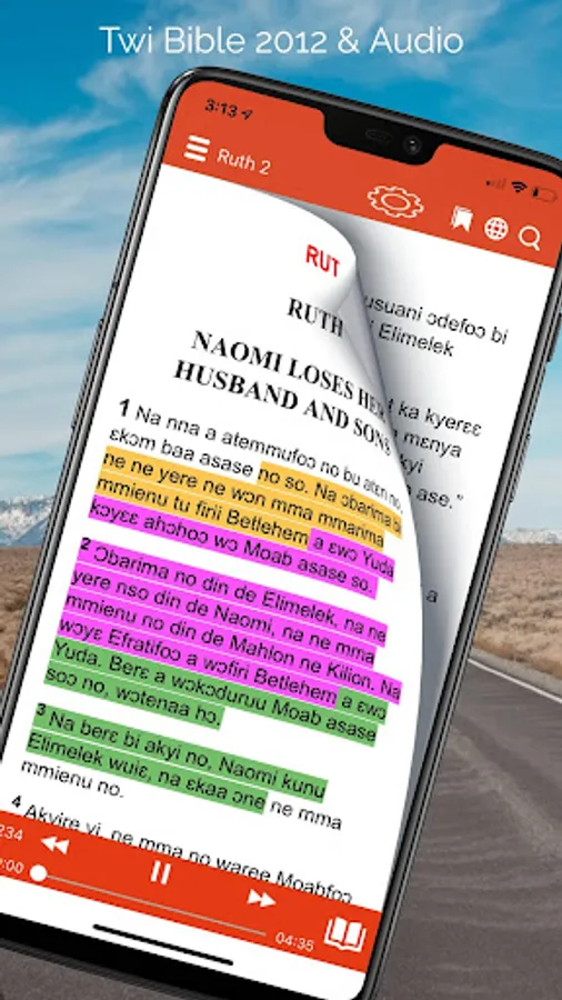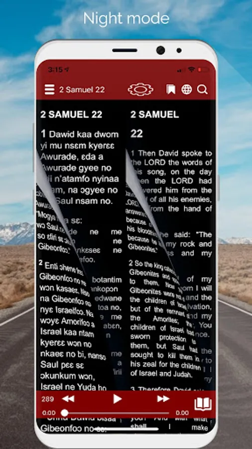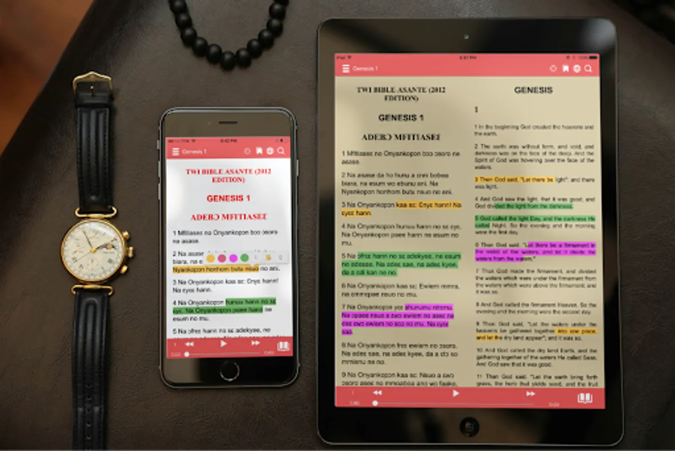 • Split-screen mode to read two Bible translations at once (Asante and Englsih)