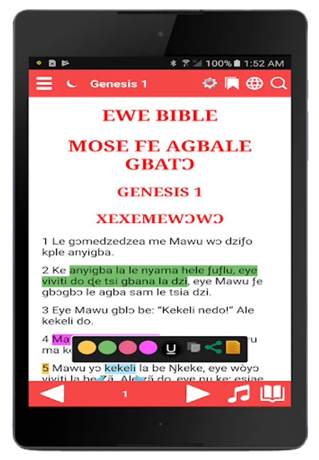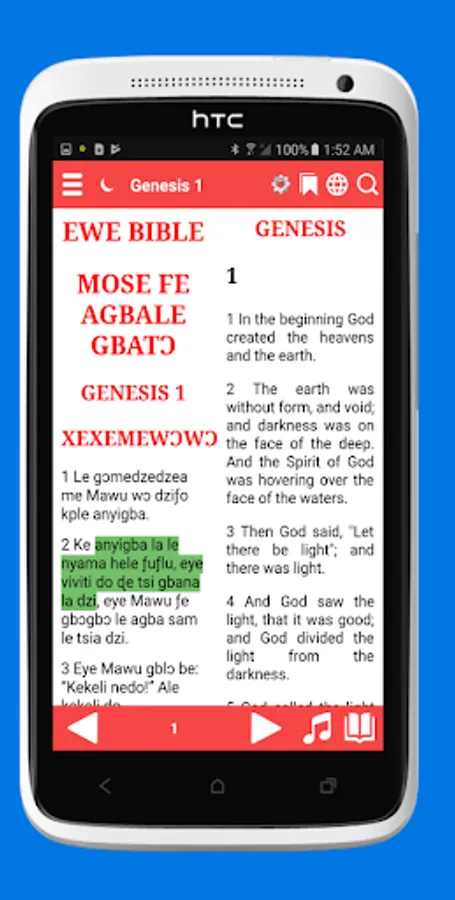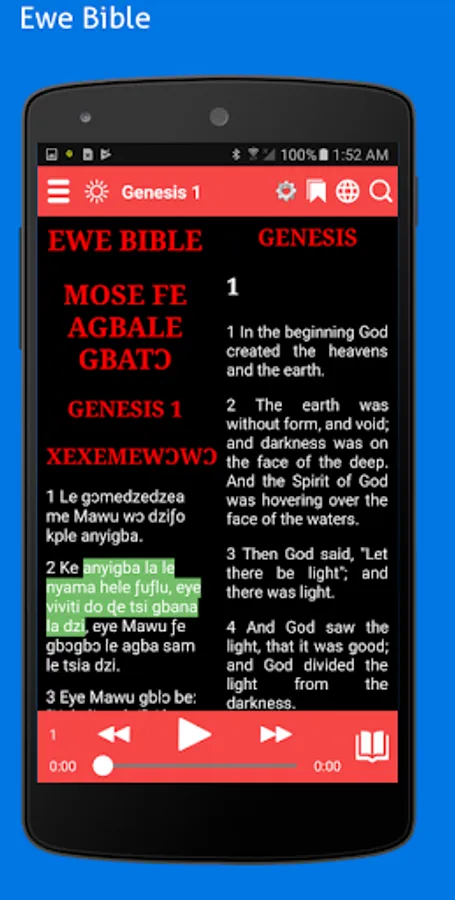 • Split-screen mode to read two Bible translations at once (Ewe and Englsih)