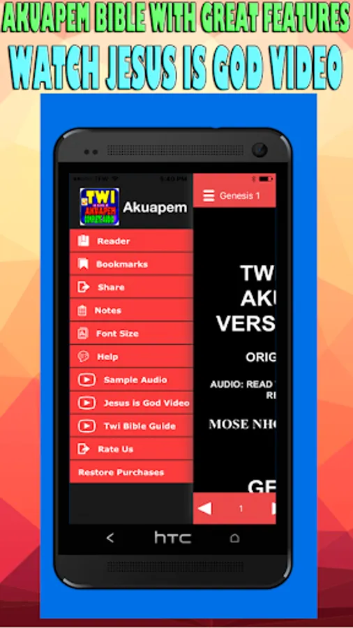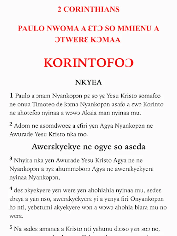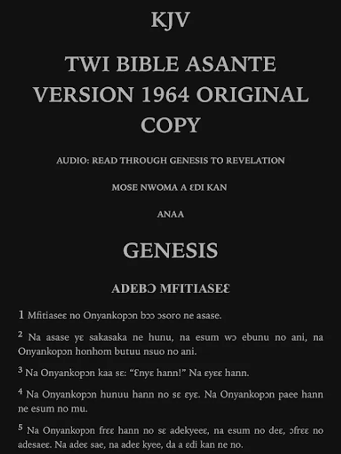 There is no other Twi Bible with complete audio Clean and perfect than this. Versions.