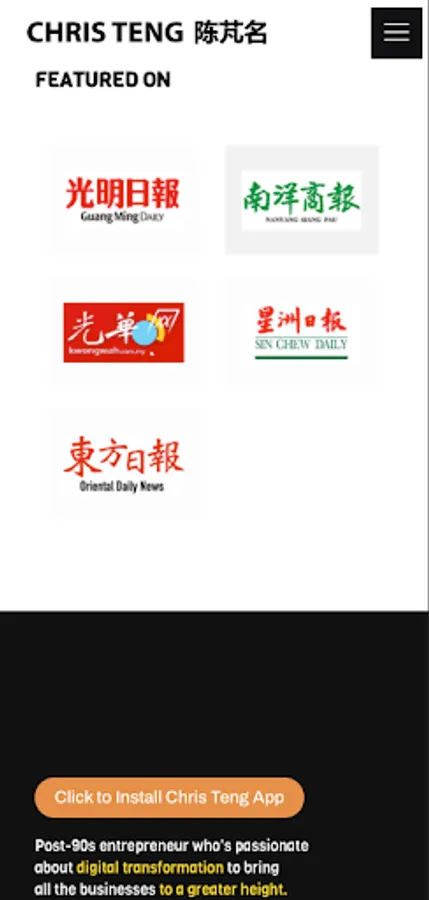 Chris Teng started his career in Web Development & Digital Marketing since 2011 . As the Digital Marketing IT Specialist, he had the opportunity to work with many corporations to manage their virtual golden assets in the digital world.
