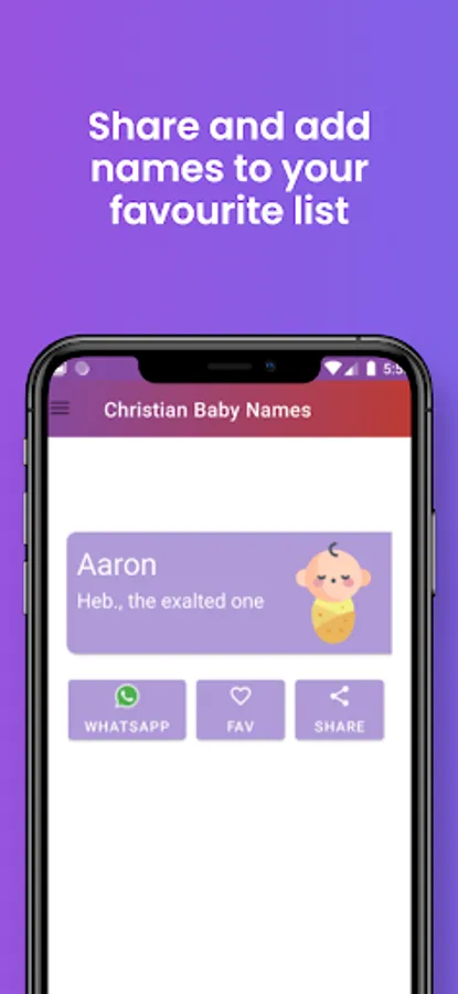 Christian Baby Names are the only app with A huge collection of Christian names. Share names with family or friends with whats app, Gmail, Bluetooth, etc.