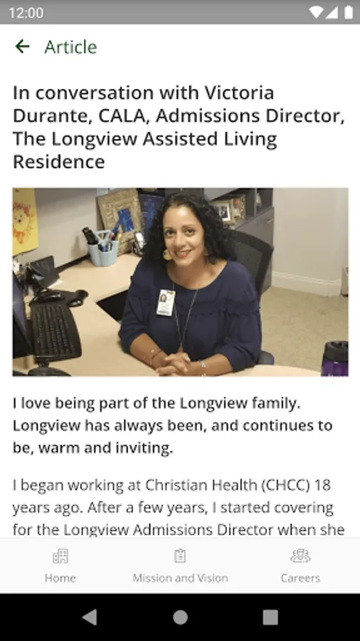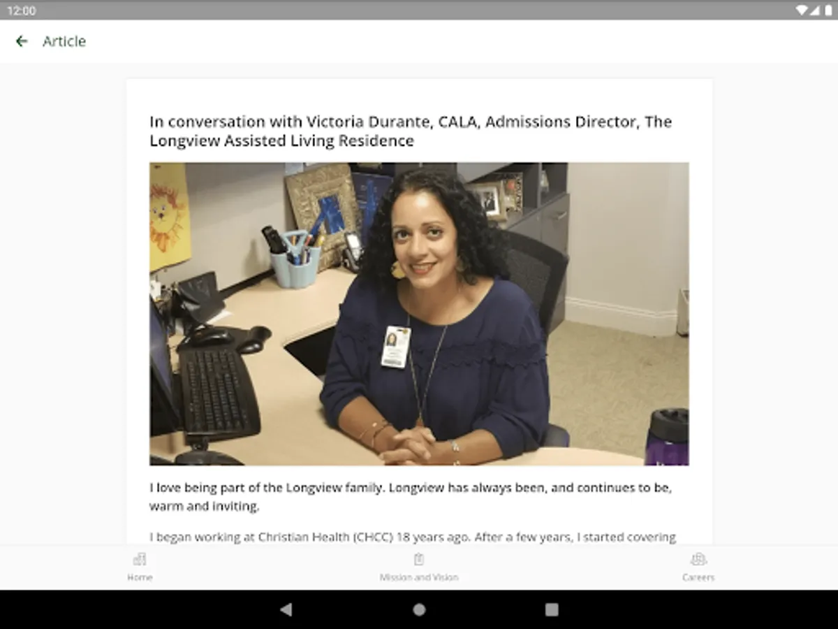 • News - stay up to date with the latest news. Push notifications allow you to see exciting updates at Christian Health.