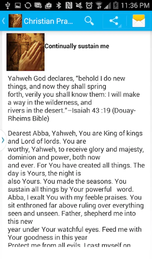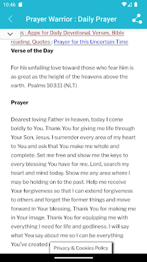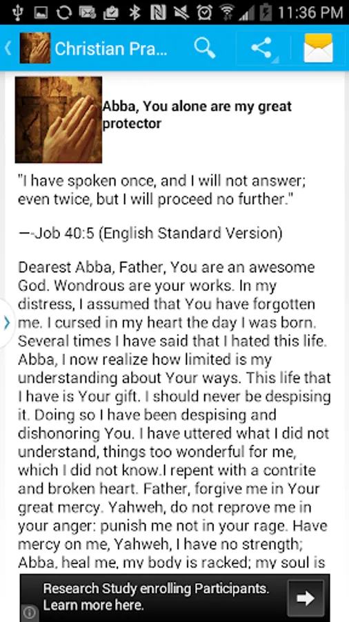 Prayer is a powerful and effective means for us to connect with God. Even with the unceasing pressure of everyday life, prayer is as important as it has ever been to stay focused and connected with God Almighty. If you like this app, please share with your friends and family. God Bless you!