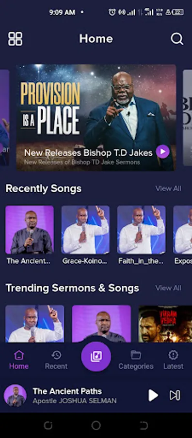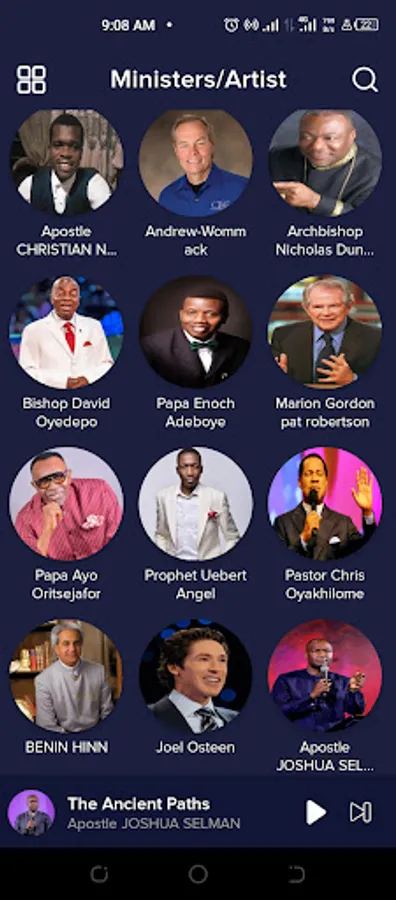 - over 1,000 audio podcasts and over 50 vodcast (video podcast) channels from different ministers and christian groups including Dr. Creflo Dollar, Joseph Prince, Bishop T.D Jakes, Bishop Oyedepo, Apostle Joshua Selman, Apostle Johnson Suleman, Steven Furtick, Mark Driscoll, Jesse Duplantis, Bill Winston, Kenneth Copeland, Jerry Savelle, Andrew Wommack, John Hagee, Chip Ingram, Andy Stanley, Paula White, Rod Parsley, Sid Roth, Rick Warren, Max Lucado, Dr. Charles Stanley, Alistair Begg, Jack Graham, Jentezen Franklin, Timothy Keller, Sam Adeyemi, Paul Adefarasin, Perry Noble, Perry Stone, Kenneth Hagin, John Piper, John Ankerberg, Jimmy Swaggart, Adrian Rogers, Casey Treat, T.B. Joshua, Chuck Swindoll, Dag Heward-Mills, Dick Bernal, Elevation Church, Greg Laurie, James Robison, Jesus Culture, Joel Osteen, John Piper, Joyce Meyer, Mark Hankins, Mike Murdock, Archbishop Nicholas Duncan-Williams, Ravi Zecharias, Rick Renner, Terry Savelle Foy, Timothy Keller, William Lane Craig, Terry Virgo, Sheryl Brady, Nancy DeMoss Wolgemuth, Dr. Mensa Otabil, Jimmy & Karen Evans, Gregory Dickow, Fearless LA, CNN, 700 Club, and a host of others.