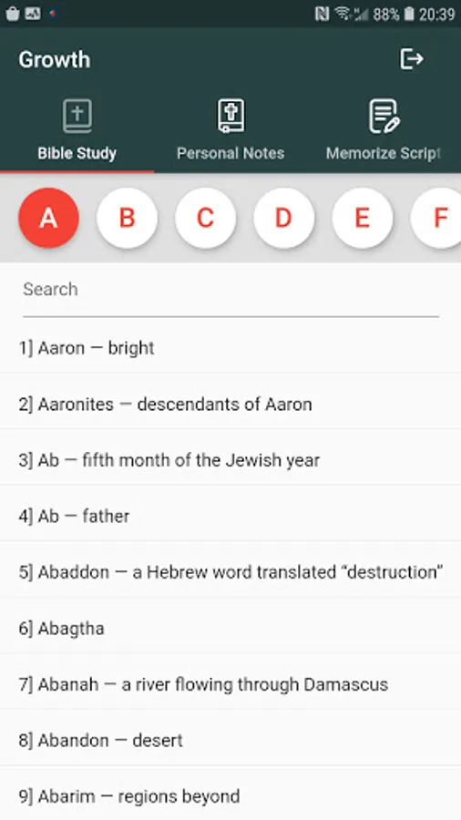 The alphabet based listing provides you to read bible studies by Evans Francis and you can create own personal notes based on bible.