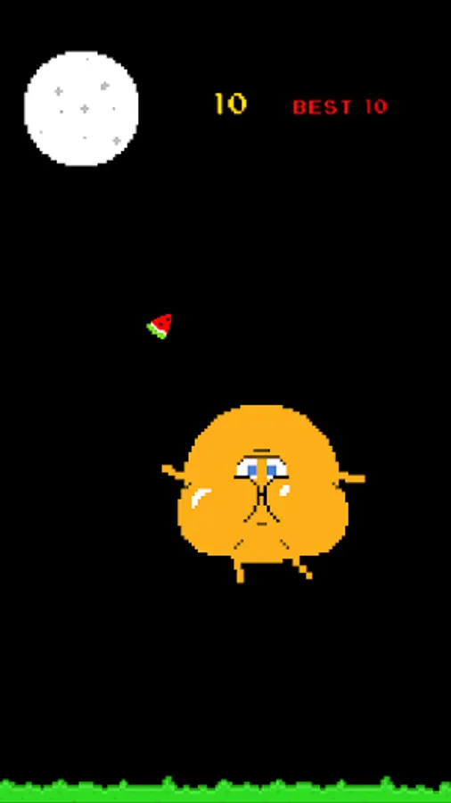 This is a fast reflexes/ accuracy game, move and feed the little dude very quickly with your finger, tap the screen and slide the yellow and cute ball looking boy, then test your reflexes and try to hit and eat the food that comes non stop, Fruit, donuts, Hamburgers, etc. on the small black mouth of the guy very quickly before the food disappears, you need to aim at the small food and hit it, you really need to be quick when you tap and slide but don't worry buddy don’t stop trying your hit accuracy will get better after you practice, when you make 8 points the difficulty will increment a bit then 8 points later a bit more.