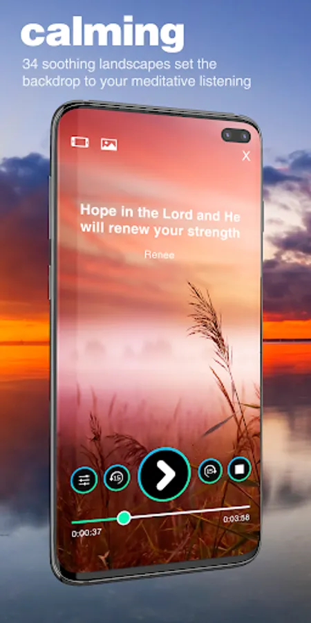 Users can select from 38 different scenic landscapes as the backdrop to each meditation. Allow the soothing sounds and sights of God’s creation relax your heart, soul and mind as you focus on each guided meditation.