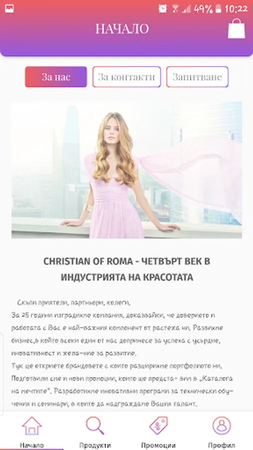In our desire to make it easier for You, we developed an application-handbook for the Best Coiffeurs in Bulgaria. This App will help You be always well informed about new promotions and events, and it will save You time when placing an order.
