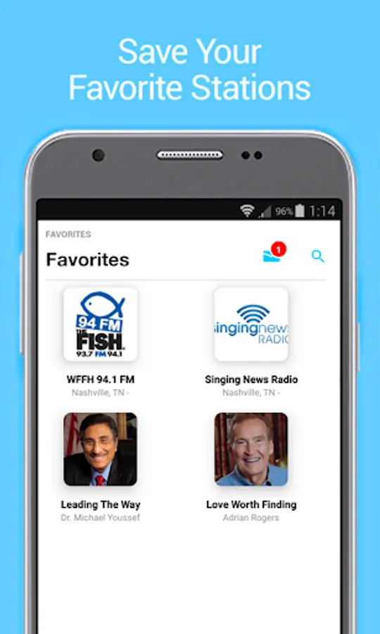 Save your favorite Christian radio stations to easily access programs and music you want to hear.