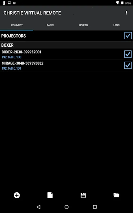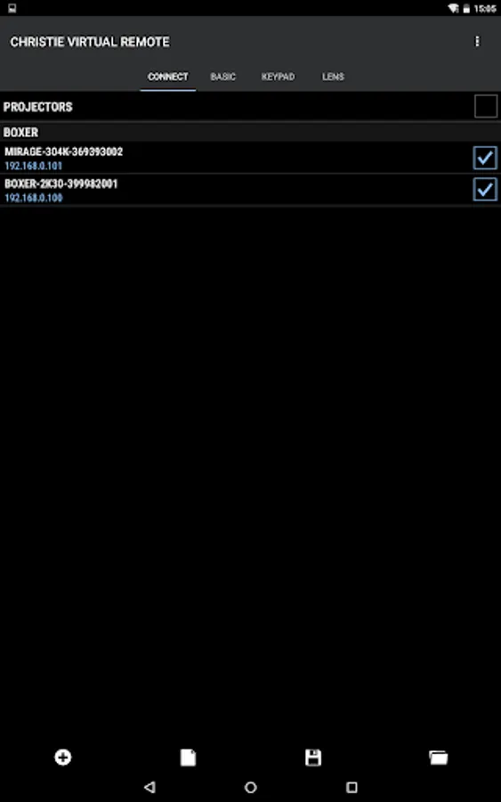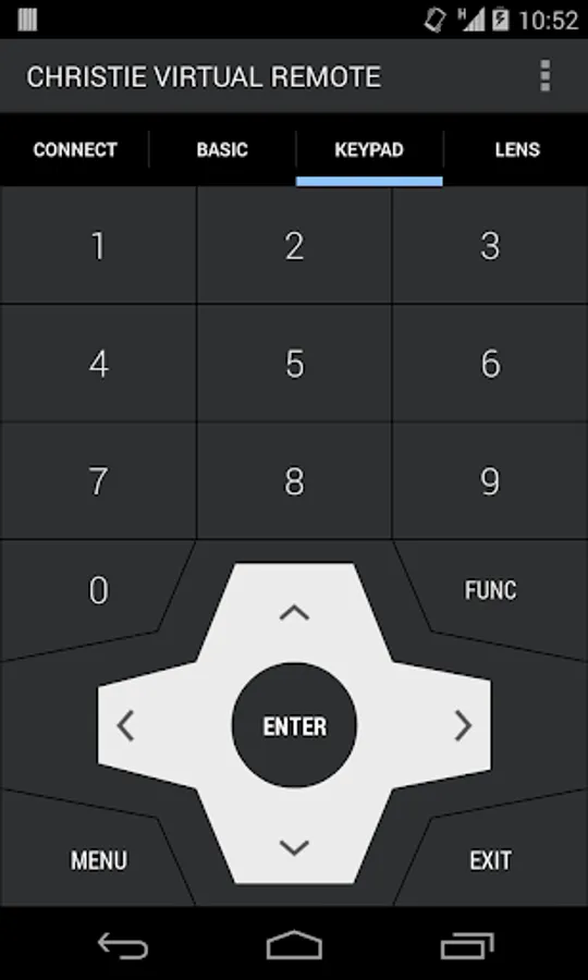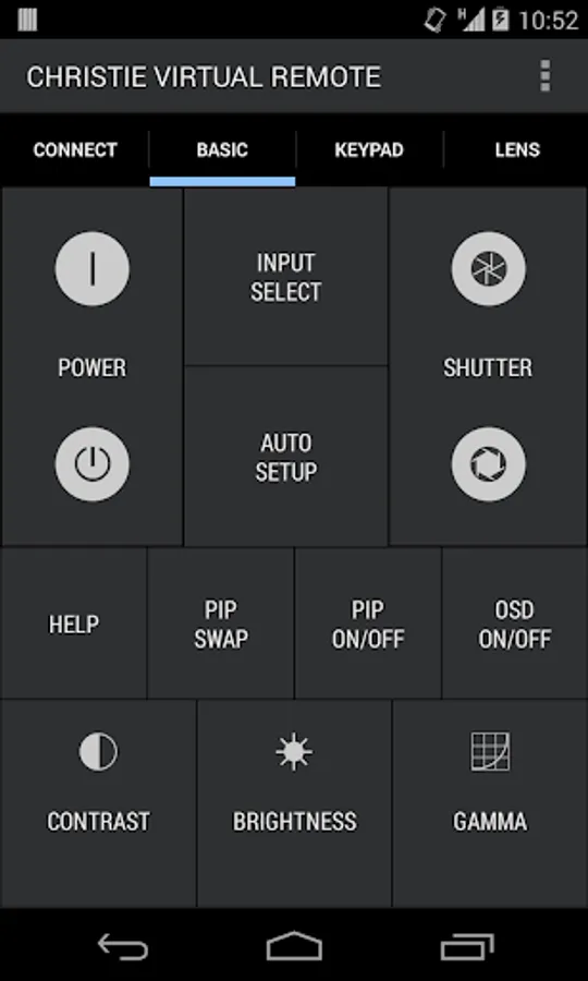 The Christie® Virtual Remote App offers a projector control alternative to the standard IR remote control, providing end users and installers with the same control capabilities from their Android based mobile devices over Wi-Fi®. This app is specifically designed to control any Christie J or M Series, 3-chip DLP® projector. Each projector can be controlled on an individual basis, or grouped together and controlled simultaneously.