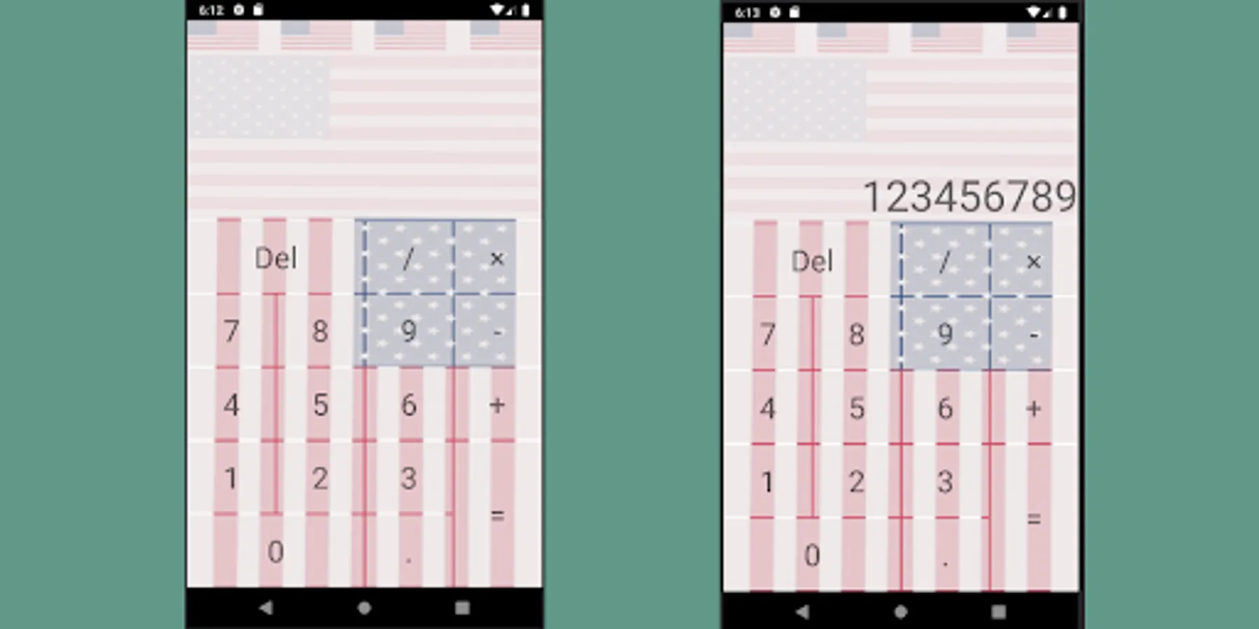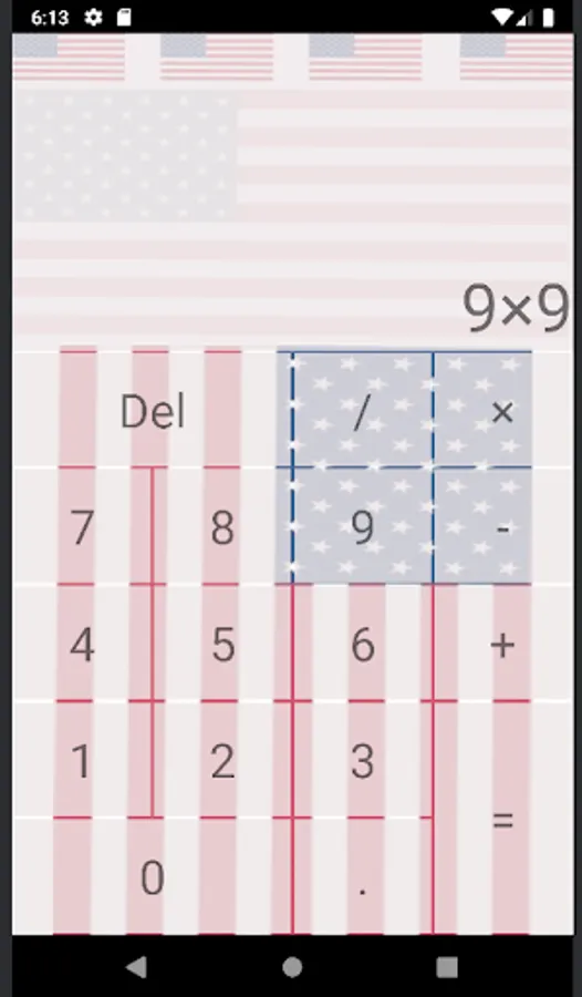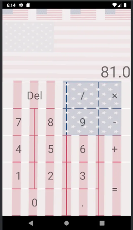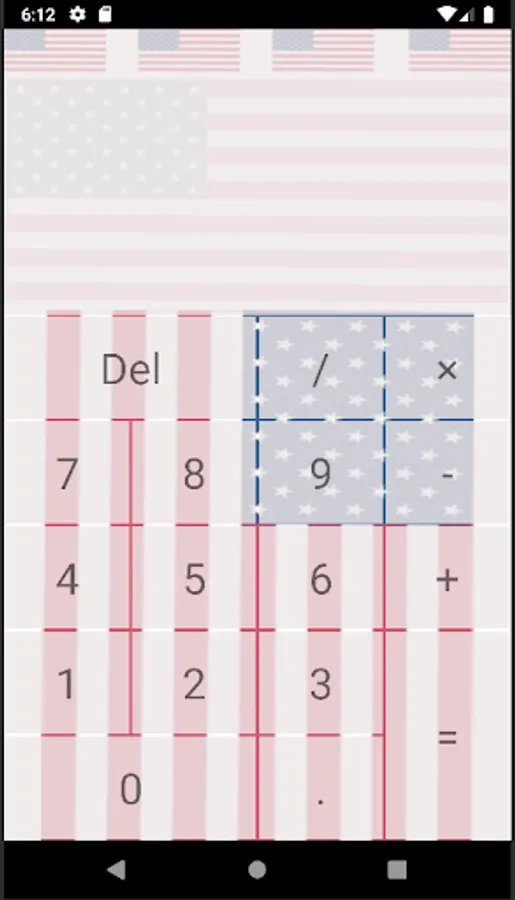 US Flag Simple Calculator features the US flag in the background. This is a very simple calculator with working functions.