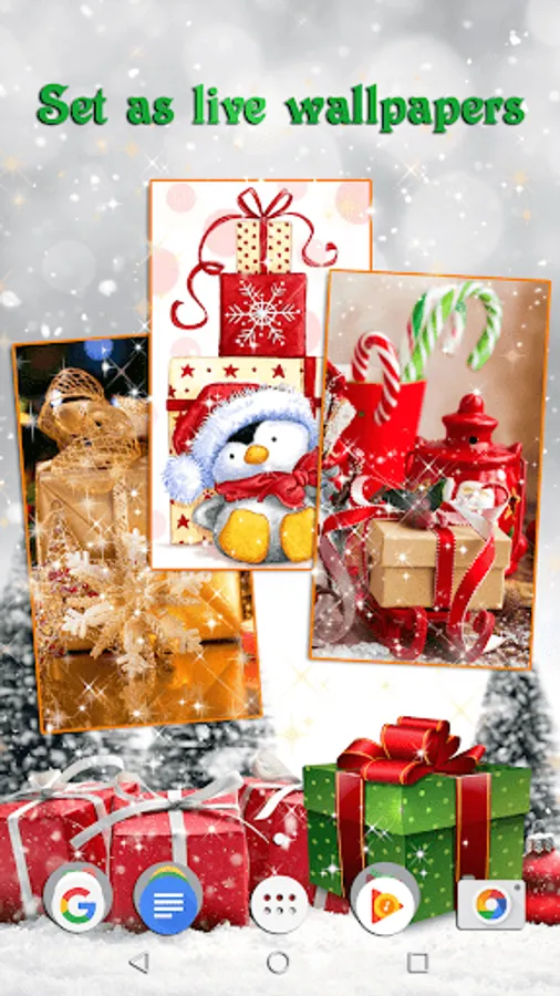 If you like Christmas wallpapers, you should download this magic wallpaper live and experience the Christmas magic. This app is live wallpapers Xmas 2023 collection with live winter backgrounds and Xmas photo background. All the people who like wallpapers Xmas will enjoy this magic live wallpaper. Download the winter backgrounds live collection and get the cool “Xmas backgrounds” for your screen. If you like “Christmas live backgrounds” you will love this app that is also for “happy New Year wallpaper” lovers. Download this app which is called “Christmas Gifts” - “Live Wallpapers New Year” and you will see that it's the right one for you. Download the collection with beautiful Christmas wallpaper and enjoy the cool “snow wallpaper” and “winter wallpaper” app. People who love snow wallpaper live and winter wallpaper live will enjoy this Christmas backgrounds live with “new year wallpaper”. Check out the amazing 'Christmas Gifts' - 'Live Wallpapers New Year' and enjoy having beautiful backgrounds. There are many cool “snow live wallpaper” apps, but this “Christmas wallpaper HD” is the . Download this “Christmas wallpaper live” and enjoy the animated pictures for your screen.