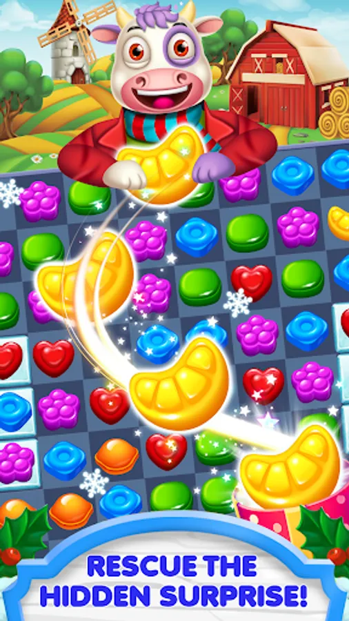 Play this Candy Smash game with 800 levels of match 3 fun, filled with lots of new challenges! Light the candles, clear the snow to find the gifts, catch the jumping snowmen, fill the gift bags. Drop Santa down the chimney, ignite the firecrackers, fill the big sock and look what's in the fridge. All while taking care of the snow guns!