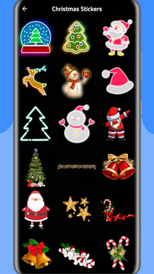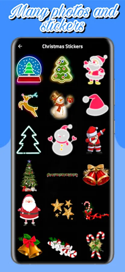 The Christmas application has many pictures that can be downloaded by decorating the Christmas tree and stickers that you can use to design Christmas pictures for you