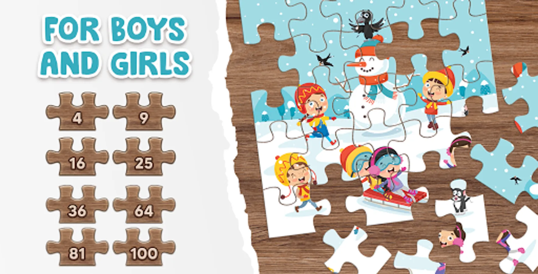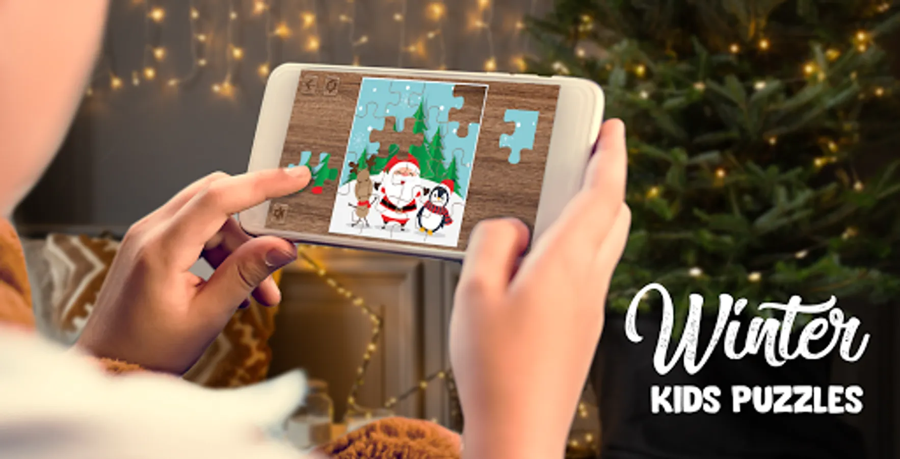 Christmas jigsaw puzzle is the best education game for kids with cute winter pictures!