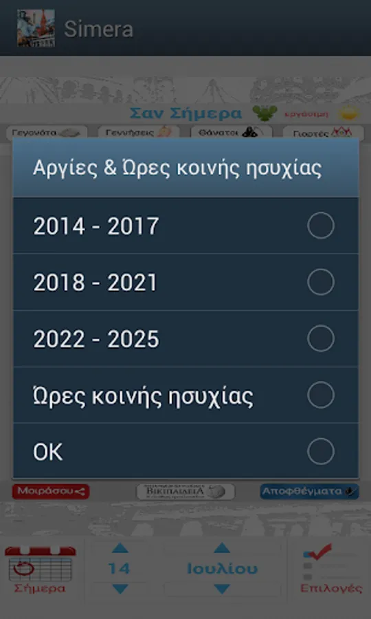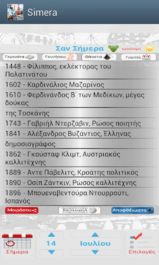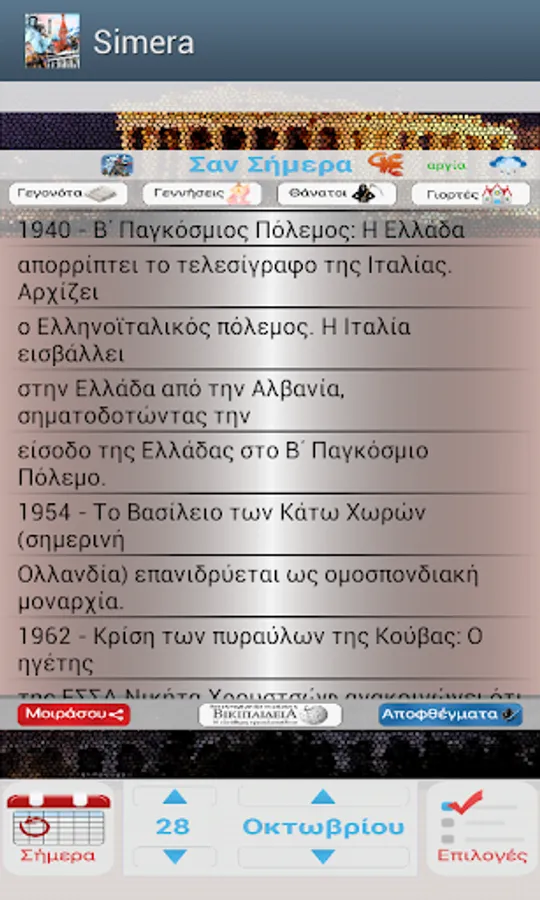 - Special icons on important days of the year that provide historical information and customs (eg. On March 25 appears by pressing the icon that displays text with a brief history of the beginning of the Greek Revolution)