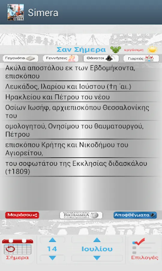The best, most beautiful and rich calendar application material, church calendar and quotations in Greek App Store here. You do not need any other and is completely free with no ads!