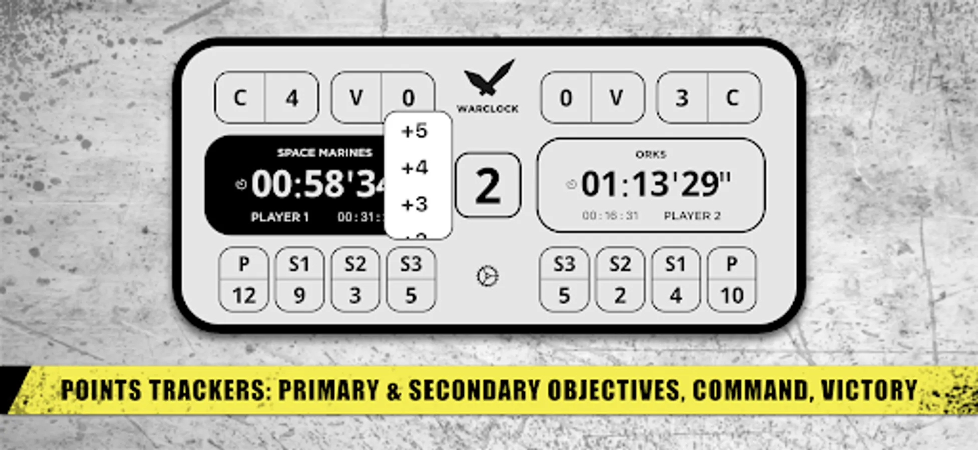 (*) Warclock can be used for Warhammer AOS© and Warhammer 40.000© games. Please note that Warclock is in no way supported by or affiliated with Games Workshop Limited.