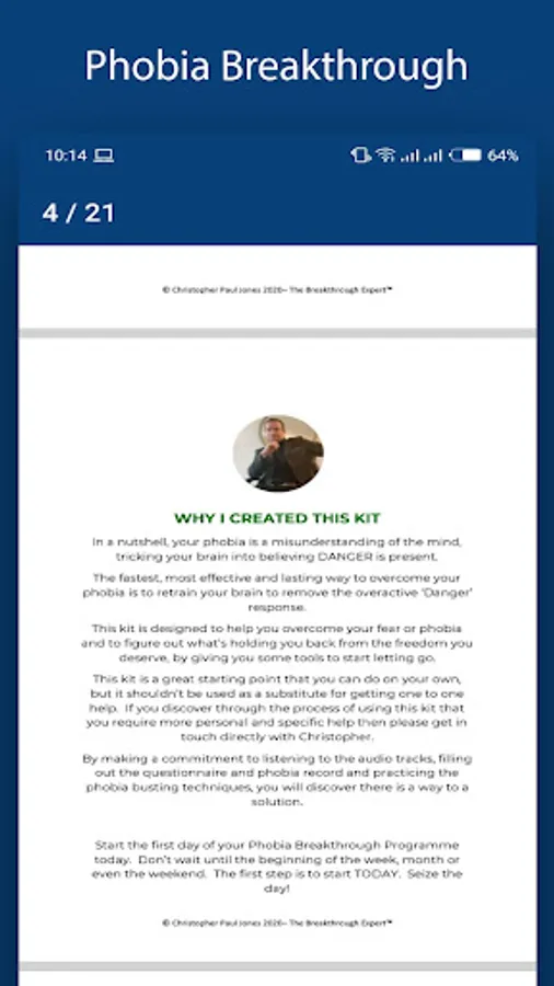 Then download the ‘PHOBIA BREAKTHROUGH’ app today and you will: