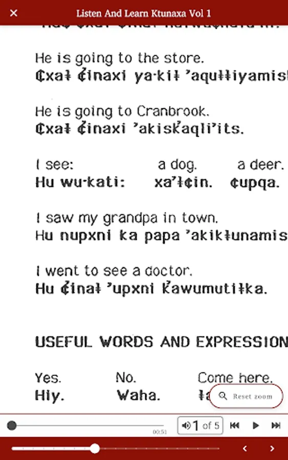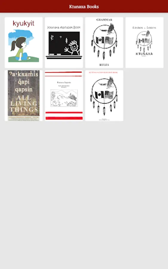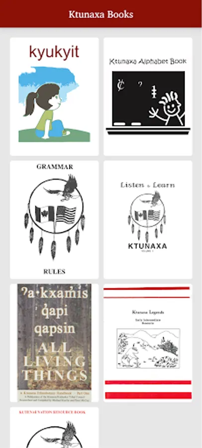 The Ktunaxa Books app offers a collection of books distributed by the Ktunaxa Nation Council. They are intended for community members of all ages and span a range of topics. It is important to note that the Ktunaxa language belongs in the hearts and minds of Ktunaxa people, and these tools are meant to connect learners to our ancestors and to each other.
