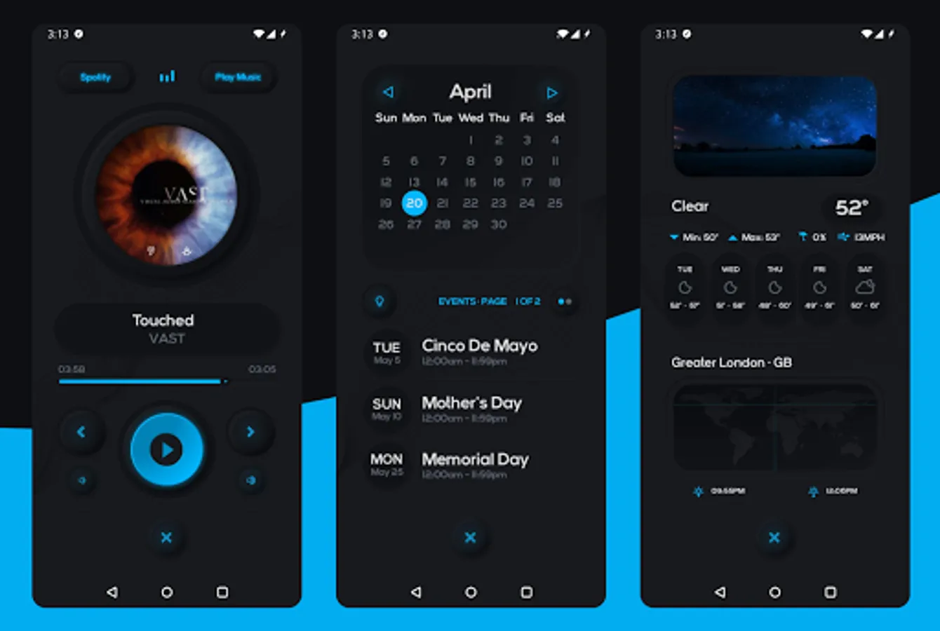 Once Installed… Open Kustom → Load Preset → Installed → Tap on the Theme → Hit the save button → Ok to Set as Wallpaper/Set Wallpaper and go back to the Homescreen