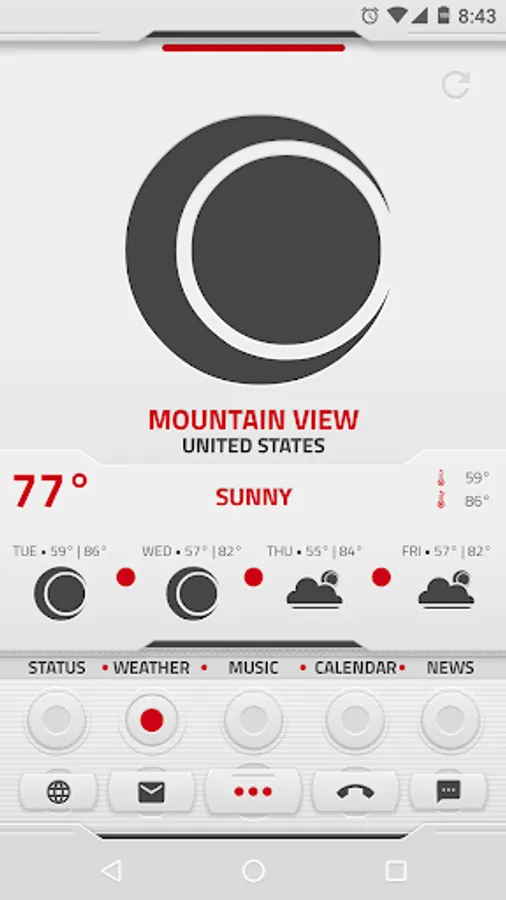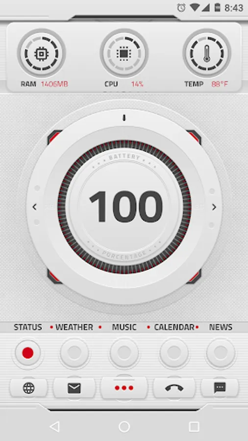 Note: Depending on your screen size you may need to scale the theme by opening KLWP - in the root layer go to "LAYER" - scale it using the - and +, do not use the double arrows. And also depending on the screen size and scaling things may look a bit different than the screenshots.