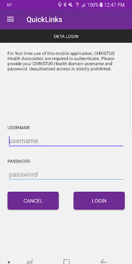 This mobile application allows for CHRISTUS Health to present employees with shortcut buttons that can either open a specified mobile application, phone number, or website. If the desired mobile application is not installed, a link to the Google Play store is presented to the user.