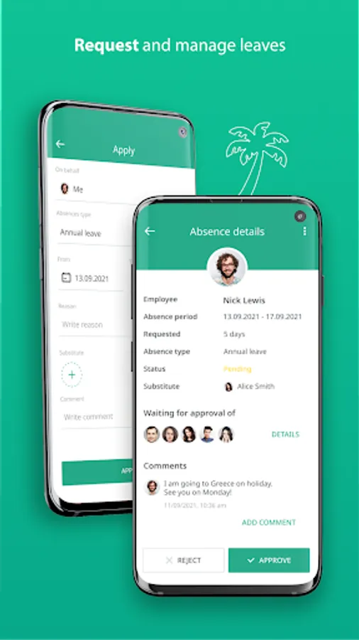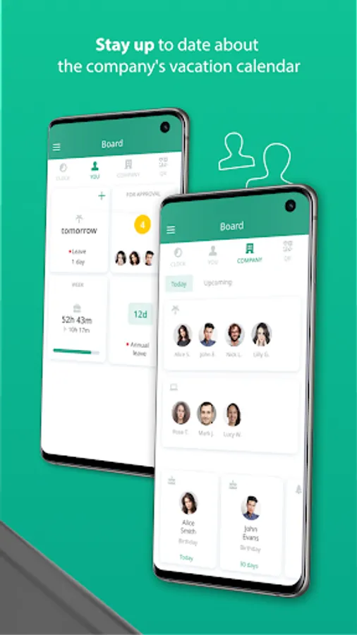 - A friendly dashboard that informs you about upcoming absences or birthdays of your colleagues