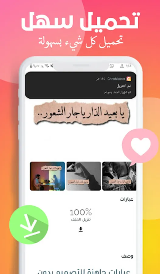 The ChroMaster application is a new application and the first of its kind specially prepared for mobile designers, as it provides everything that designers need from chromate, Arabic fonts, extensions, design pictures, and most importantly, ease of download.