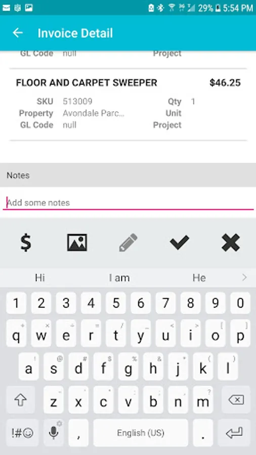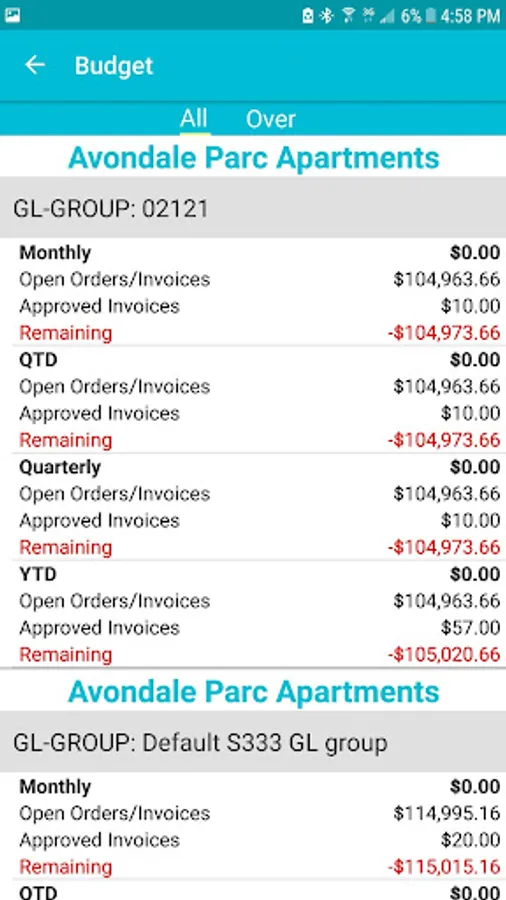 View Budget for invoice and order.