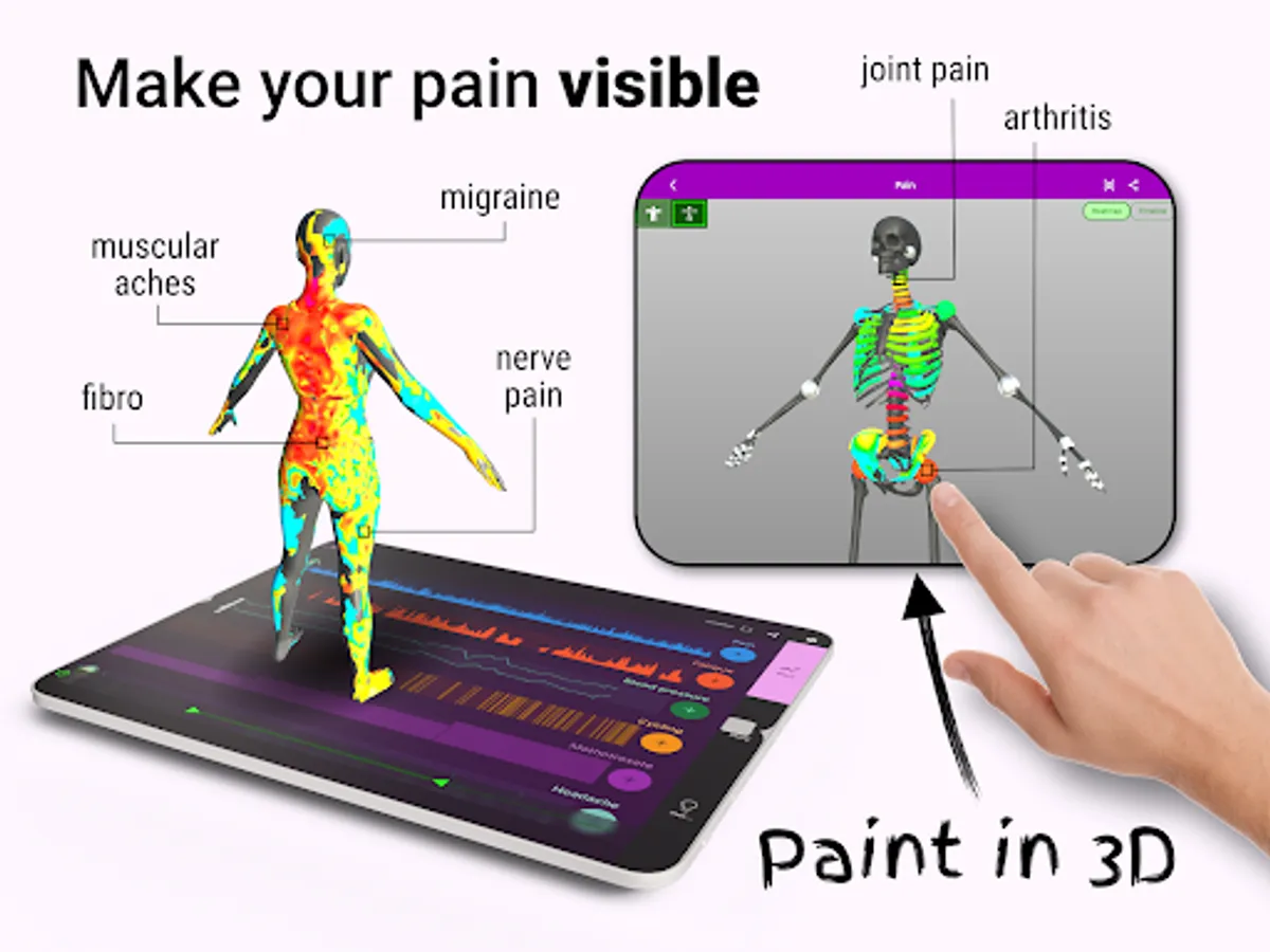 - make your pain visible by "painting" the location of your chronic pain onto interactive 3D models which you can freely rotate and zoom